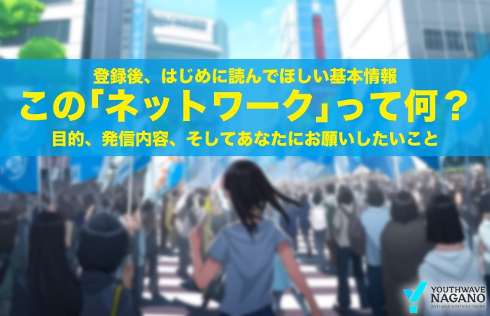 「敵基地攻撃能力保有・大軍拡に反対する青年の草の根ネットワーク」に登録いただいた方に向けた、「大軍拡」の基礎情報、大軍拡阻止に向けた長野県内のアクションなどを伝える、メンバー限定のニュースサイトです。※ご友人以外の不特定多数に向けたサイトの拡散はご遠慮ください。